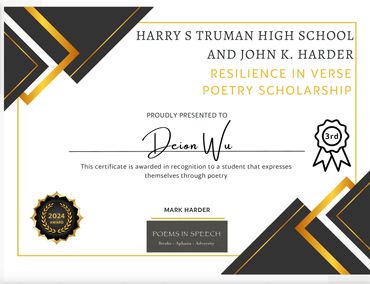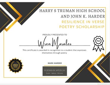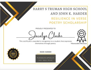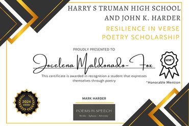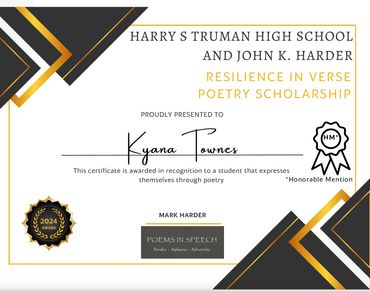 Welcome, seniors of Harry S Truman High School, to the "Resilience in Verse" poetry contest! This contest aims to showcase your creative talents while exploring themes of disability, adversity, hardship, and circumstances through your experiences or the people in your life. We believe that poetry has the power to inspire, encourage, and uplift, and we can't wait to witness the depth of your emotions and the beauty of your words.