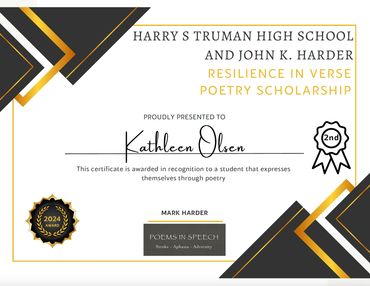 In honor of my brother, this is the Harry S Truman High School and John K. Harder RESILIENCE IN VERSE POETRY SCHOLARSHIP.